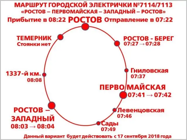 Электричка будет отправляться со станции Ростов-Главный в 07:22 и двигаться по следующему направлению: Ростов-Берег — Гниловская — Первомайская — Левенцовская — Сады — Ростов-Западный —1337-й км — Ростов-Главный. На конечную станцию, которая совпадает со станцией отправления — Ростов-Главный, электричка будет прибывать в 08:22.