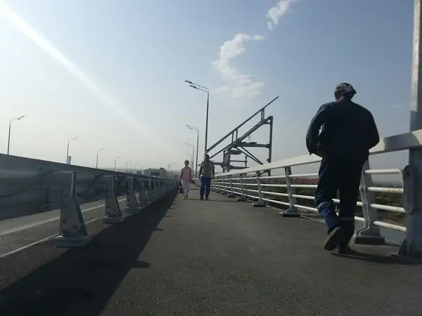 Однако работы на мосту ещё продолжаются. Так, рабочие завершают монтаж лифтов-подъёмников для пешеходов: по два с каждой стороны сооружения.