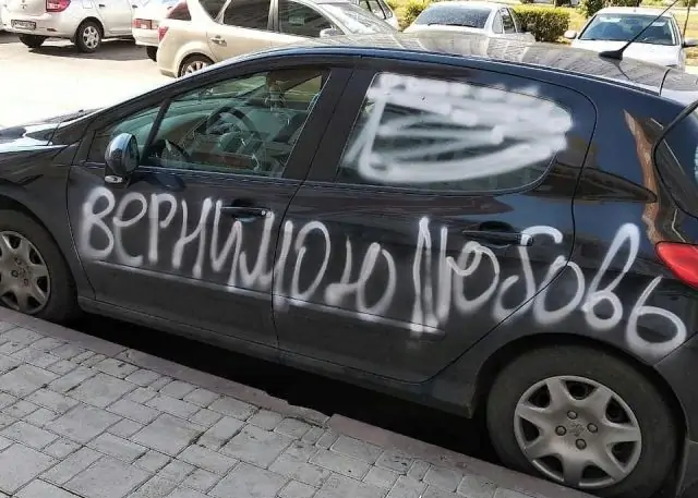 Так, на иномарке обиженная мать ребёнка написала, что «дочь скучает», «плати мне» и в завершении попросила «вернуть ей любовь».