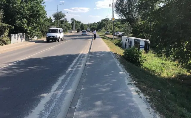 От удара автозак вылетел в кювет. В аварии пострадали два человека, их доставили в больницу.