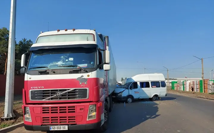Судя по кадрам видео, которое появилось в сети, водитель маршрутки пытался объехать большегруз, но потерял управление.