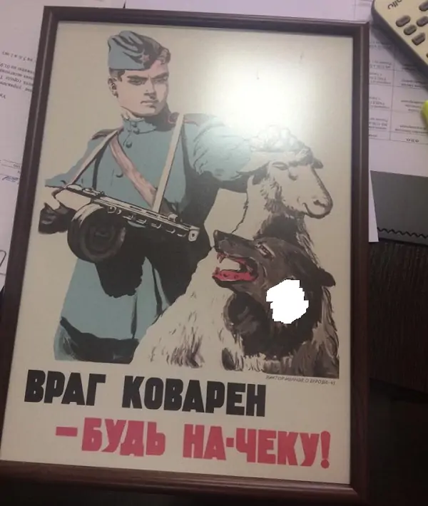 Причиной инцидента стал известный советский плакат, который якобы висит на стене на третьем этаже управления МВД по Таганрогу. На нём изображён советский солдат, который срывает шкуру с овцы, а под ней оказывается волк. Слоган на плакате гласит: «Враг коварен — будь бдителен!».