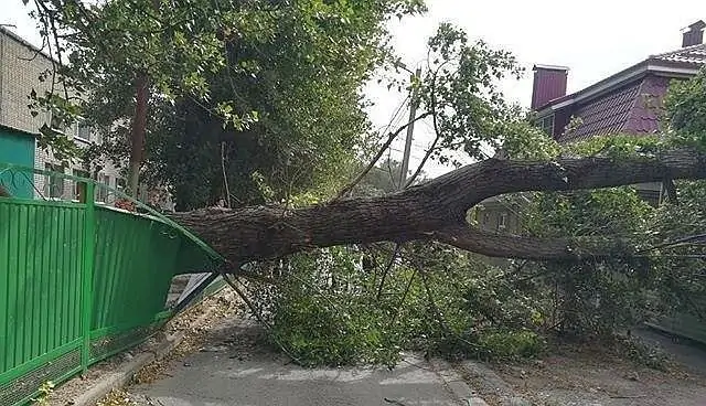 Ещё одно дерево упало на Пушкинской, 231. Оно упало рядом с тремя девушками, идущими по улице.