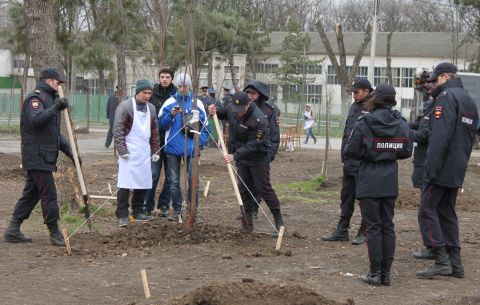 Несмотря на холодное утро, на многих улицах Ростова можно было увидеть целые семьи, спешащие на определённую в каждом районе площадку, чтобы высадить дерево или даже несколько.