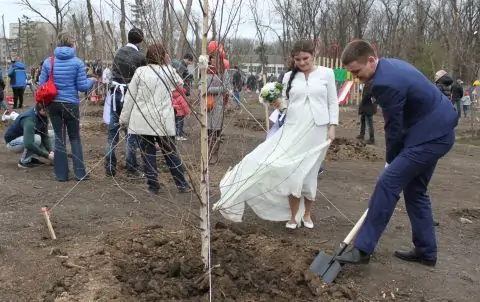 Недалеко от дерева вице-губернатора своё первое деревце посадили молодожёны Юлия и Ренат Кудряшовы. Семейная пара в скором времени станет родителями и поэтому в следующем году пообещали посадить ещё одно дерево, но уже вместе с дочкой.