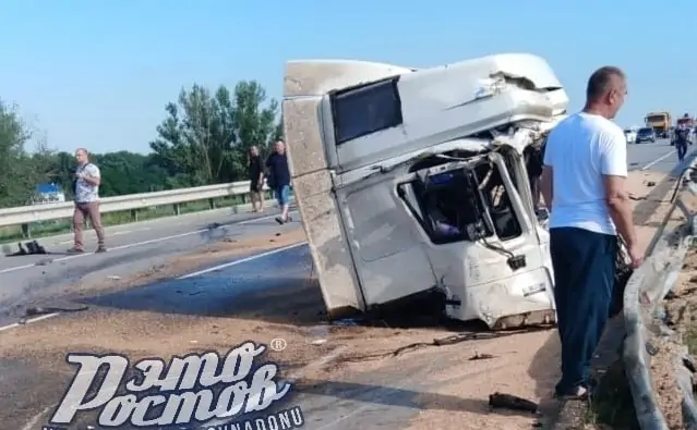 В Ростовской области в пятницу, 18 июня, на 7-ом километре автодороги «Константиновск-Тацинка» произошло столкновение двух грузовиков и легкового автомобиля. По предварительным данным отдела пропаганды регионального УГИБДД, 35-летний водитель фуры МАН не справился с управлением, выехал на встречку и врезался в «Камаз», которым управлял 49-летний мужчина. В этот момент 27-летний водитель Hyundai Accent врезался в МАН.