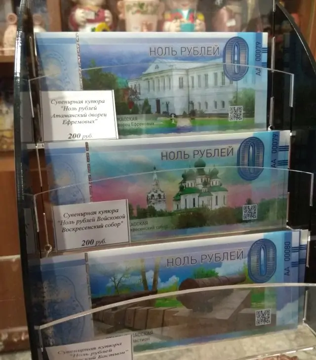 В минувшие выходные в станице Старочеркасской Ростовской области презентовали банкноты номиналом в ноль рублей. На купюрах, не являющихся платёжным средством, изображены три достопримечательности станицы — Войсковой Воскресенский собор, которому в этом году исполняется 300 лет, Атаманский дворец Ефремовых и Даниловский бастион. Первый тираж банкнот основатель проекта «Ноль рублей» Александр Сивожелезов передал директору архитектурного музея-заповедника Андрею Кляндину. Пока купюру можно приобрести только в музейном комплексе за 200 настоящих рублей.