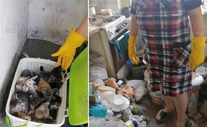 «Ад для животных существует! Их убивали и ели. В квартире, похожей на большой мусорник, живёт пожилая мать с 30-летней дочерью. Бедных животных они забирали на рынке, где котят отдают в добрые руки. Мы забрали 41 котёнка, взрослого полуживого кота и одного щенка. Часть котят уже полуживые, они еле дышали, часть в относительном порядке. Стараемся спасти!!! Трупы животных умерших своей смертью, лежали там же в квартире... Кости, фрагменты скелетов, внутренности... На балконе сушились шкурки кошек и котят, а в кастрюле на кухне обнаружили варёные останки котят», — написала девушка в соцсети.