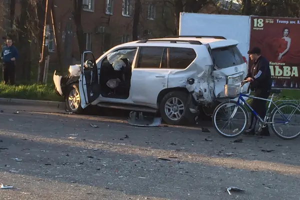 В субботу, 16 апреля в Таганроге произошло ДТП с участием внедорожника и бетономешалки. Как сообщают очевидцы, авария произошла на пересечении 2-й Советской и Транспортной. Бетономешалка на большой скорости снесла светофор, затем врезалась в Land Cruiser Prado, а потом в стену жилого дома.