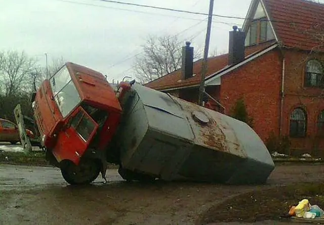 По всей видимости, из-за сильного размыва грунта асфальт не выдержал, и многотонная машина ушла под асфальт.