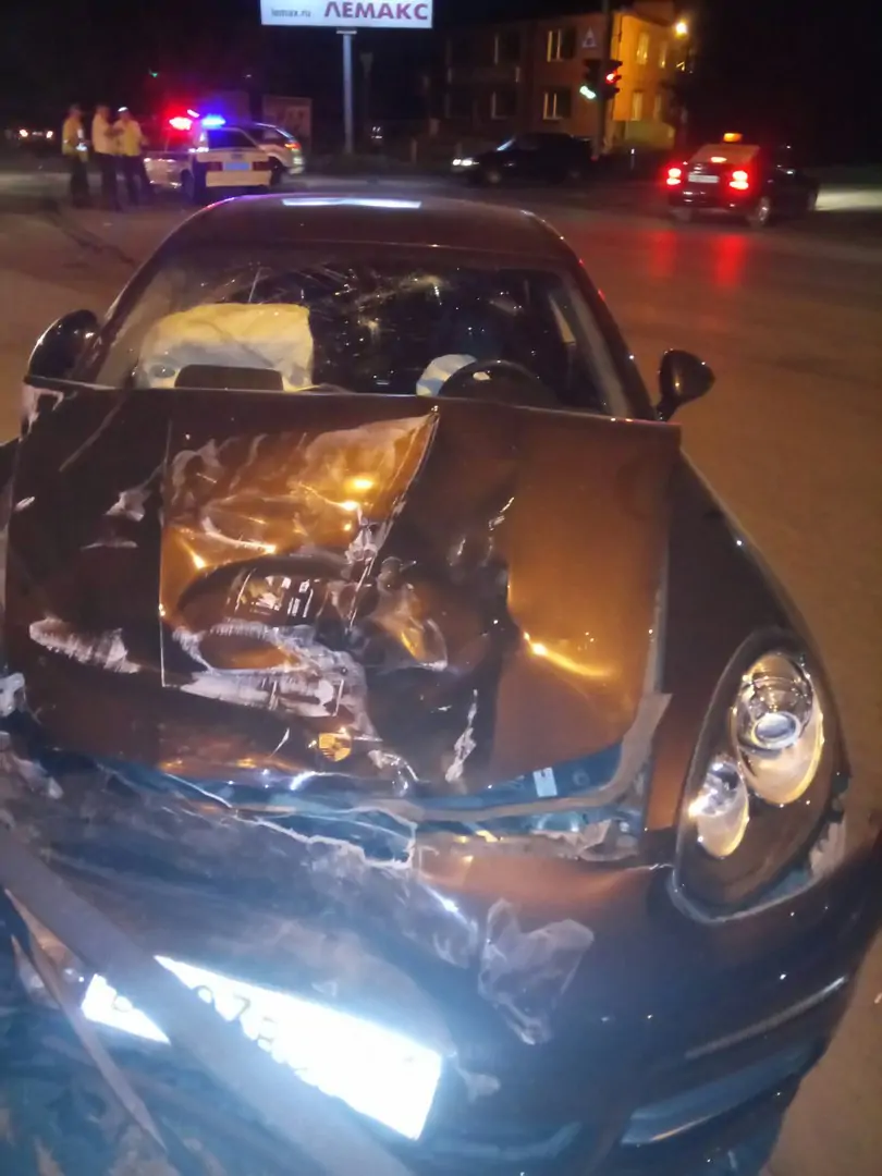 ДТП произошло 12 августа около 22:45 на пересечении Транспортной и 2-й Советской. Водитель люксовой иномарки допустил столкновение с остановившимся в попутном направлении на красный сигнал светофора «ВАЗ-21093». После столкновения «ВАЗ-21093» столкнулся с автомобилем «Нива». Водитель Porsche Panamera с места аварии скрылся.