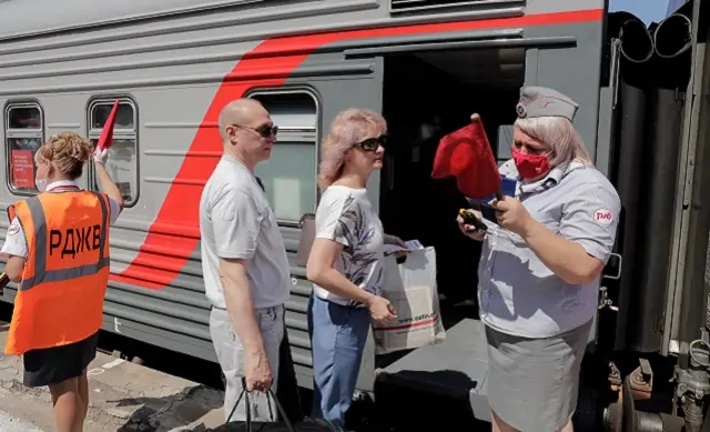 Пассажиры поезда. Фото пресс-службы «РЖД»