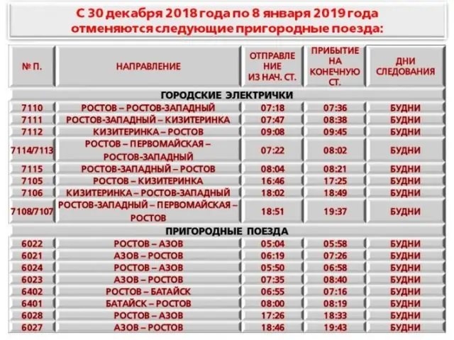 С 30 декабря в Ростове перестанут курсировать восемь пригородных поездов и восемь электричек. Работа маршрутов возобновится 9 января. Об этом сообщает «Ростов-Транспорт».