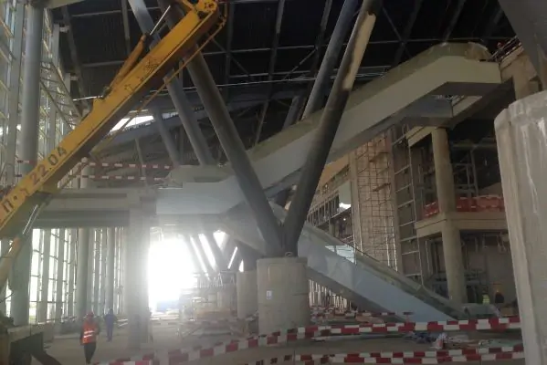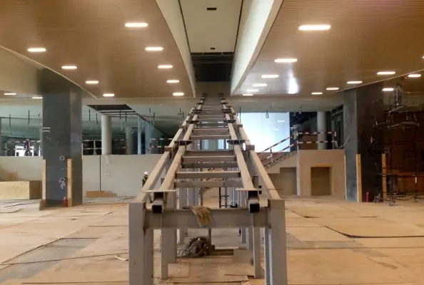 После регистрации, пассажиры будут подниматься на эскалаторах в зону досмотра на третий этаж