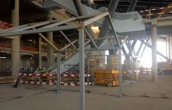 На первом этаже комплекса уже смонтированы каркасы будущих торговых площадей. Здесь, как и в залах ожидания, они выполнены в форме домиков. Как пояснил Сергей Краснов, они будут оформлены искусственными цветами и сеном, символизируя донские степи.