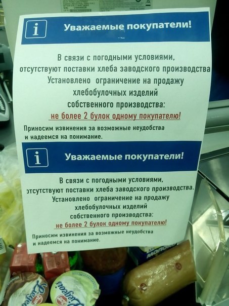 А тем временем в соцсетях появились фото, свидетельствующие о том, что в магазинах вводятся ограничения на продажу хлеба — не более двух булок в одни руки.