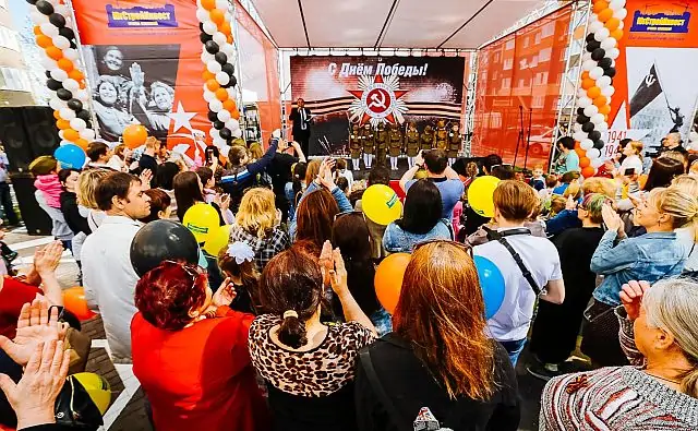 На празднике были развёрнуты тематические фотозоны, а также мастер-классы по сборке-разборке оружия. Дети раскрашивали макеты военной техники, мастерили открытки для ветеранов и играли с героями любимых мультфильмов. Кроме того, гости праздника приняли участие в танцевальном флешмобе «Вальс Победы».