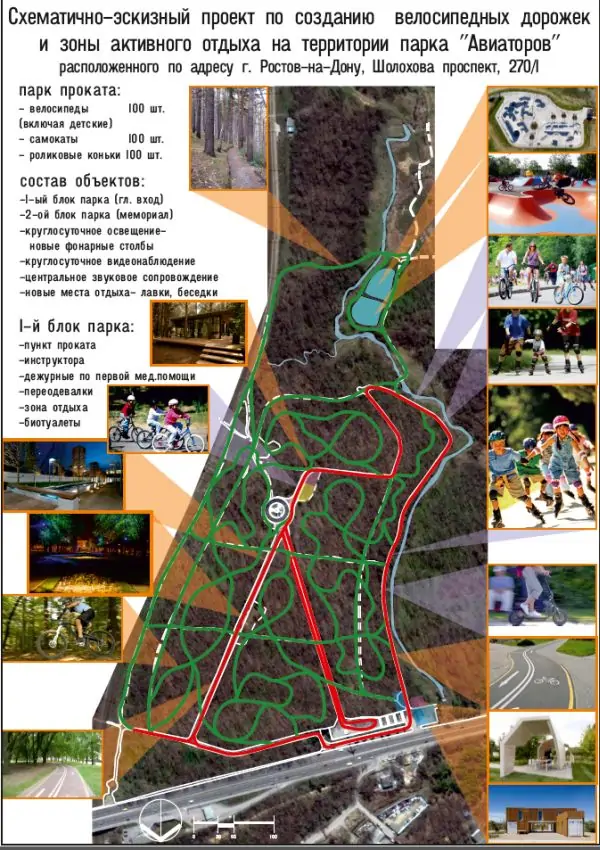 В парке Авиаторов, примыкающем к Шолохова, пытаются воплотить веломечту: несколько общественных организаций за свои средства создают здесь инфраструктуру для катания на велосипедах, маунтин-байках, а также занятий бегом и семейного отдыха. Ростовчане рады появлению нового парка отдыха, однако лишь единицы готовы вкладывать в его развитие труд и средства.