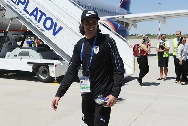 Самолёт со сборной Уругвая приземлился в Ростове днём 19 июня. Почти все игроки были хмурыми, кроме звёздного форварда Эдинсона Кавани, которому ростовское солнце явно пришлось по душе.