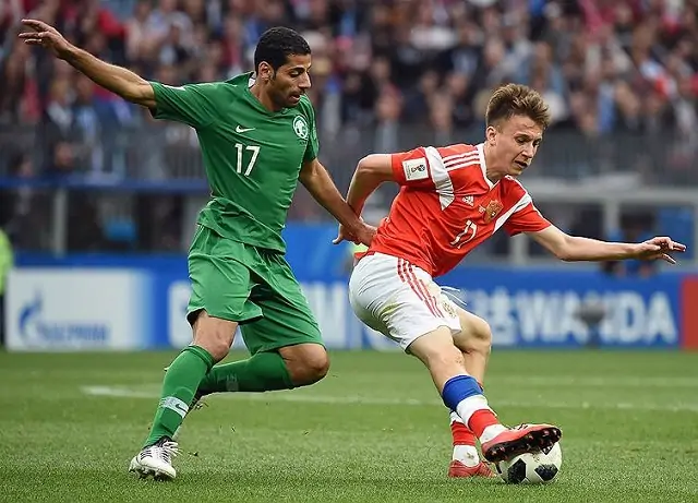 Аль-Джассим (в зелёном) забыл про Россию и Головина. Фото commersant.ru
