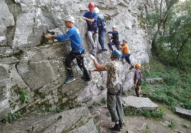 Навыки работы в горной местности отрабатывали на скале высотой 28 метров.