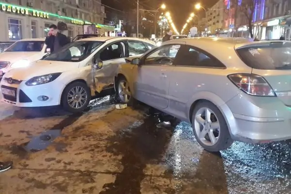 В центре Ростова Opel, проскочивший на красный свет, столкнулся с Ford Focus