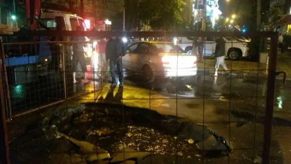 Как сообщили очевидцы, автомобиль был припаркован неподалёку, но во время сильного дождя, обрушившегося на город, его просто смыло в яму потоком воды.