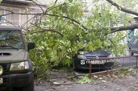 Шквалистый ветер, который бушует в Ростове с прошлой недели, повалил несколько деревьев, повредив припаркованные машины. Так, в понедельник, 24 октября, во дворе многоквартирного дома по проспекту Ворошиловскому упавшее дерево придавило сразу пять автомобилей. К счастью, в момент падения дерева никого в автомобилях не было.