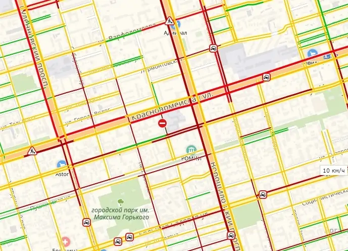 Заторы в городе. Скриншот «Яндекс.Пробки»