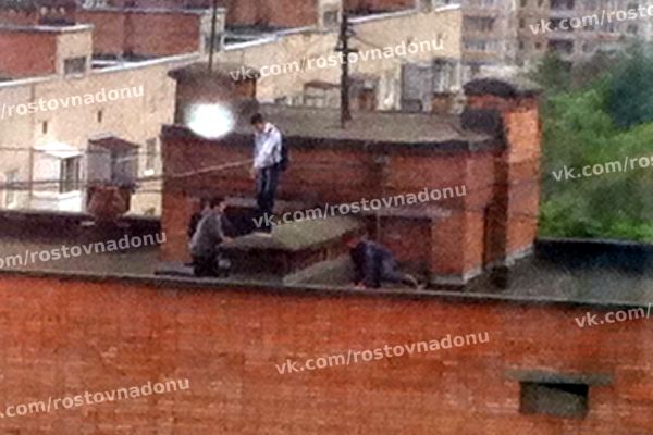 Любопытными фотографиями поделилась с пользователями форума «Ростов-на-Дону | Главный» Анастасия Велькович. Ростовчанка запечатлела момент, как на крыше дома напротив развлекается молодежь.