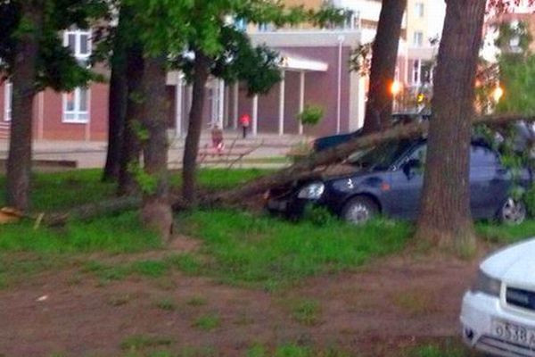 На припаркованную на газоне иномарку упало дерево. Как пошутили участники сообщества «Про Авто Ростов», это можно расценивать, как штраф за неправильную парковку.