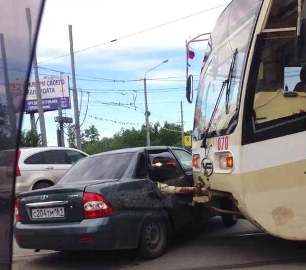 Утром, 10 мая, в Ростове произошло очередное ДТП с участием трамвая. На площади Пятого Донского корпуса вагон столкнулся с Lada Priora. Фото с места аварии опубликованы в социальных сетях.
