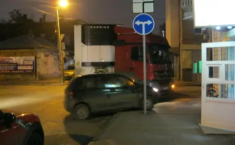 Более того, пытаясь повернуть, фура зацепила автомобиль Subaru.