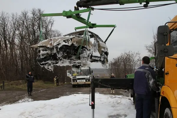 Под вой сирен кавалькада спецтехники проследовала к месту запланированных ЧП. «Промёрзших до костей» пассажиров лихо эвакуировали в другой автобус и повезли отпаивать чаем в пункты обогрева, а в это время другие спасатели колдовали над разбитой «восьмёркой». Не прошло и пары минут, как тело пострадавшей (манекен с наклеенной на лице женской фотографией) отвезли на носилках в карету скорой помощи. Заключительных штрих — пожарный от души налил в разбитую машину пены, создав реальное ощущение снегопада.