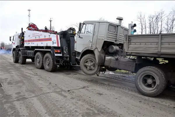 А в нескольких метрах от внезапно возникших «сугробов» мощный тягач оперативно приподнял кабину «Камаза» и потянул грузовик к месту ремонта. Как выяснилось позднее, таких тягачей для нужд области закуплено три и все будут работать на М4 «Дон» в составе оперативной группировки. Более того, в первый для области снегопад, произошедший в конце ноября, один из тягачей уже опробовали в реальных условиях, и он вытащил 70-тонный грузовик. Другой вопрос: каким образом застрявшее транспортное средство такого тоннажа вообще оказалось дороге? Но это так, к слову.