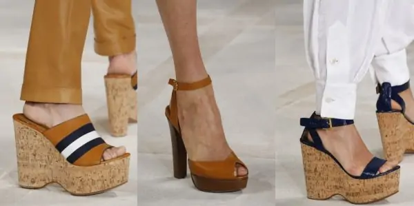 Что же касается обуви, то в моде будут массивные босоножки и шлёпки. Мода диктует более устойчивый каблук.