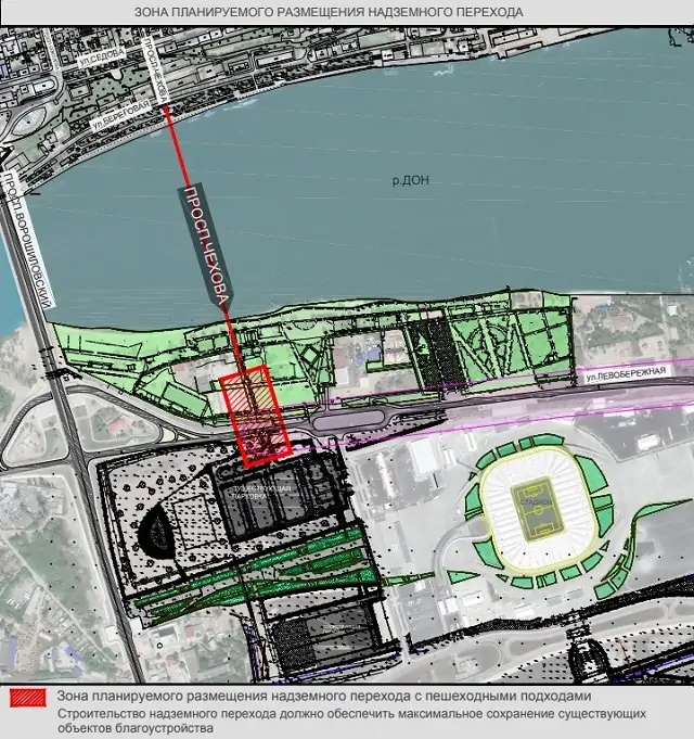 В середине сентября глава администрации Ростова Виталий Кушнарёв рассказал, что пешеходный «летящий мост» на левом берегу Дона появится к 2020 году. Якобы он необходим для безопасности отдыхающих — многие приезжают на личных автомобилях, оставляют их на парковке стадиона и идут через дорогу в парк.