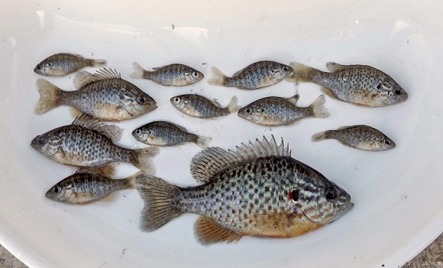 Разновозрастные и разноразмерные солнечные окуни, фото пресс-служба «АзНИИРХ»