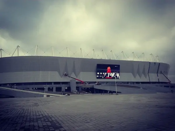 Главное событие последних дней — появление медиафасада на лицевой части стадиона (на нём уже транслируются видео с Кубка Конфедераций — 2017), а также установка двух больших табло внутри арены.
