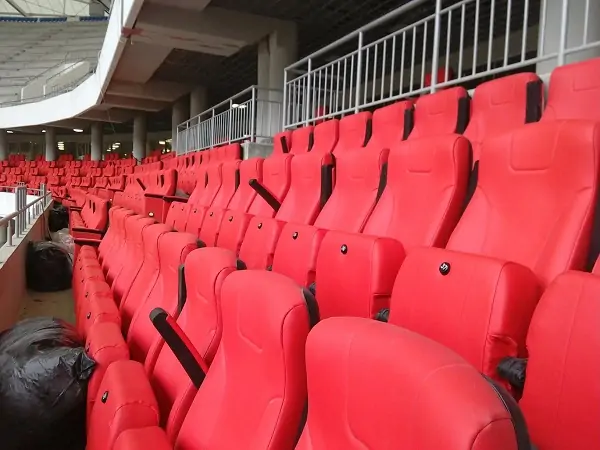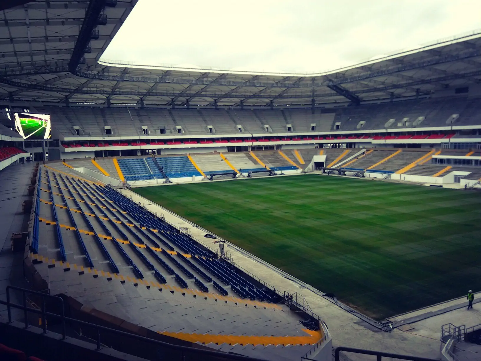 Сиденья для простых смертных (они будут синими) смонтированы лишь на части восточной трибуны.