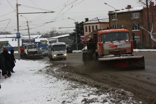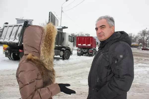 — Мы обработали все магистральные дороги. В ночь у нас работало 98 комплексных дорожных машин (КДМ). Вначале они сыпали соль, потом счищали снег. И до самого утра работа не прекращалась. На магистральных дорогах, по крайней мере на тех, где я сейчас проехал, все дороги в каше, а это значит, что соль не даёт снегу прилипнуть к дороге. Сейчас 96 КДМ счищают снег. Вместе с КДМ работают погрузчики и ручные роторные снегометательные машины для очистки тротуаров, а также мини-погрузчики, 26 штук. Работают 11 грейдеров, которые снимают последний вал снега возле бордюров. Мы вывели на линию все 30 наших самосвалов и ещё 100 самосвалов сторонних организаций, с которыми мы заранее заключили договоры.