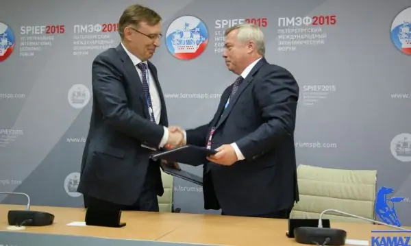 В пятницу, 19 июня, на Петербургском международном экономическом форуме был подписан меморандум о сотрудничестве между ОАО «Камаз» и правительством Ростовской области. Об этом говорится на сайте крупнейшего производителя тяжёлых грузовых автомобилей в России.
