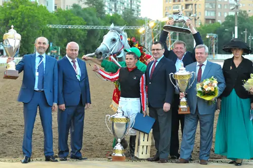 Главную дистанцию в 2400 метров за 2 минуты 33,4 секунды первым преодолел жеребец Лаки Ферст, выступавший от ООО «Конный завод «Донской» Орловского района Ростовской области. Вместе со своим жокеем и тренером Алексеем Воликом скакун получил главный приз президента России – копию скульптуры Лонсере и 5 млн рублей.