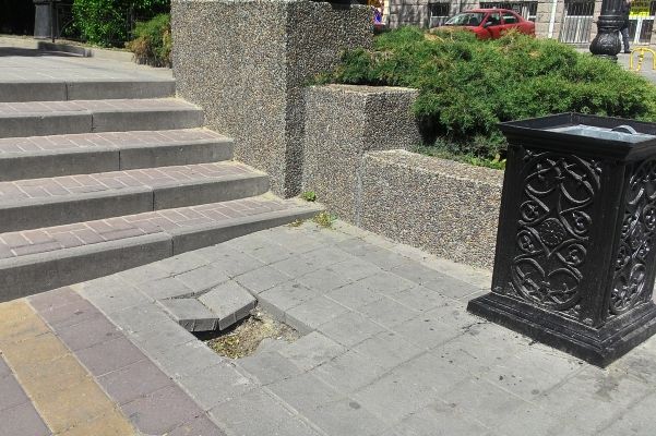 «Неужели сложно найти в городе несколько метров плитки, чтобы заделать это безобразие?! Вон, на Соборном плитку тысячами “квадратов” кладут... Такие мелочи портят общее представление о городе», — обратил внимание читатель портала Николай Козинский, снабдив сообщение фотографией.