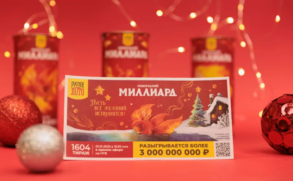 *«Новогодний миллиард» является зарегистрированным товарным знаком. Фраза «Будет разыгрываться более 3 000 000 000 ₽» обозначает общий размер средств, которые могут выиграть участники тиража № 1604 (розыгрыш 01.01.2025) в лотерее «ВГЛ 4 Спорт», алгоритм определения выигрышей № 3, коммерческое наименование — «Русское лото», срок проведения — до 31.12.2029. Подробности о лотерее - на stoloto.ru или по телефону 8(900)555-00-55.