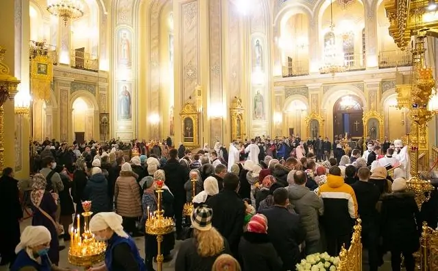 В этом году из-за коронавирусных ограничений был отменён Крёстный ход по Соборной площади, а всех прихожан обязали соблюдать социальную дистанцию и масочной режим. Правда, судя по фотографиям, о соблюдение дистанции в храме речи не шло.