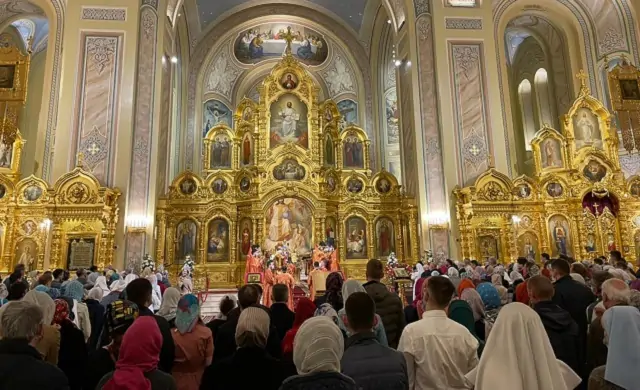 После крёстного хода началась праздничная литургия. В этом году из-за коронавирусных ограничений всех прихожан обязали соблюдать социальную дистанцию и масочной режим, но требования выполняли не все. Да и выдержать дистанцию при таком скоплении людей было непросто.
