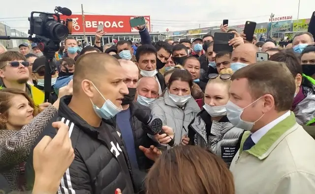Реакция людей на все заявления Доморовского была предсказуемой — его перебивали, спрашивали, кто возместит им убытки от простоя, кричали, что никто не хочет торговать на других площадках, потому что сюда уже вложены деньги. Проверки никого не смущали, просили лишь дать работать пока они проводятся.