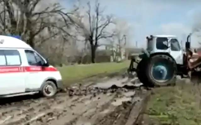 Фельдшеры выехали на вызов, но в самом хуторе их машина застряла в грязи. Самостоятельно выбраться скорая не смогла, и тогда соседи пригнали трактор. На видео, которое записали хуторяне, можно увидеть, как около двух минут трактор пытается вытащить скорую из грязи, а в некоторых ямах буксует и сам.