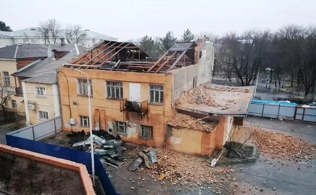 Сам бывший планетарий находится в крайне плачевном состоянии. Рабочие уже ремонтируют кровлю, а фасад пришлось полностью разобрать из-за огромной трещины на уровне второго этажа. Пристройку перед фасадом также придётся пересобирать заново.